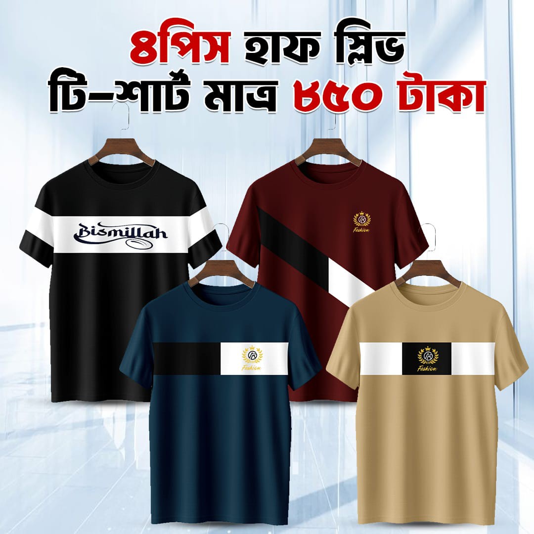 4pis Combo Half Sleeve Mesh T-shirt For Men - 1007